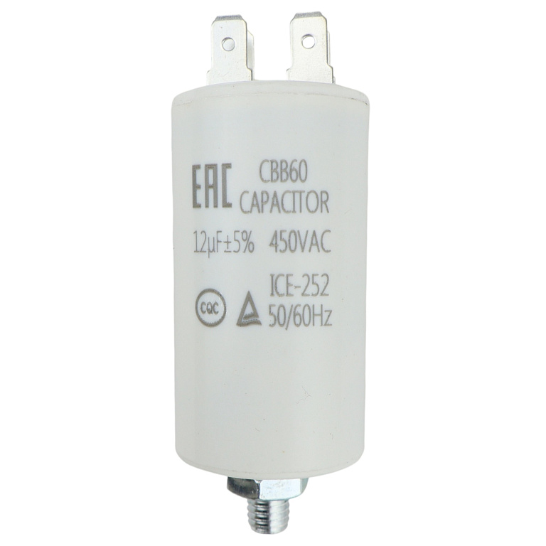 Пусковой конденсатор | Запуск двигателя | Стабилизация тока | Повышение крутящего момента | Назначение: Пусковой конденсатор является ключевым элементом цепи запуска электродвигателя, обеспечивающим сдвиг фаз тока для создания начального крутящего момента. Обеспечивает стабильный пуск моторов в стиральных машинах, компрессорах и другом оборудовании, снижает пусковые токи и предотвращает перегрев обмоток. | Ключевые преимущества: Обеспечение надежного пуска двигателя под нагрузкой; Снижение пусковых токов и защита обмоток от перегрева; Увеличение крутящего момента в начальный момент работы; Стабильная работа при частых циклах включения/выключения; Совместимость с однофазными асинхронными двигателями; Долгий срок службы при соблюдении условий эксплуатации | Признаки неисправности: Двигатель не запускается или запускается с трудом (гудит); Снижение крутящего момента при пуске; Вздутие или подтеки электролита на корпусе; Самопроизвольное отключение двигателя при запуске; Появление запаха гари от перегрева конденсатора; Изменение емкости при измерении (отклонение >20%) | Технические особенности: Тип: электролитический неполярный конденсатор; Емкость: 10-200 мкФ (в зависимости от мощности двигателя); Рабочее напряжение: 350-450 В переменного тока; Допуск: ±5% от номинальной емкости; Клеммы: стандартные 6.3 мм или винтовые; Корпус: алюминиевый с изоляцией | Совместимость: Универсальный конденсатор для двигателей стиральных машин, компрессоров, вентиляторов. Требуется точный подбор по емкости и напряжению. | Важно: Перед заменой обязательно разрядите конденсатор! Устанавливайте конденсатор с идентичными параметрами. Не используйте конденсаторы с вздутым корпусом или отклонениями в емкости. | Гарантия: Гарантийный срок — 12 месяцев. Соответствие стандартам безопасности IEC 60252-1.