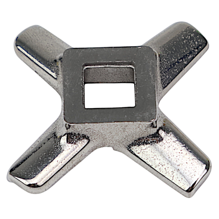 Нож для мясорубки | Измельчение продуктов | Качество фарша | Острота режущей кромки | Назначение: Нож является ключевым элементом режущего механизма мясорубки, обеспечивающим качественное измельчение мяса и других продуктов. Отвечает за равномерную консистенцию фарша и эффективность работы мясорубки. | Ключевые преимущества: Острое лезвие для чистого реза без разрывов волокон; Равномерное измельчение продукта без комков; Сохранение сочности и вкусовых качеств мяса; Износостойкая закаленная сталь; Коррозионная стойкость и долговечность; Совместимость с различными моделями мясорубок | Признаки износа: Неравномерное измельчение фарша; Появление неразмолотых жил и пленок; Необходимость приложения усилий при прокрутке; Металлический привкус у фарша; Видимые повреждения режущей кромки; Появление ржавчины на поверхности | Технические особенности: Материал: нержавеющая сталь 40Х13, углеродистая сталь; Диаметр: 50-82 мм; Твердость: 52-56 HRC; Заточка: крестообразная, четырехлопастная; Толщина: 8-12 мм | Совместимость: Подходит для мясорубок Bosch, Moulinex, Zelmer, Panasonic, Saturn. Требуется подбор по диаметру решетки. | Важно: Регулярно затачивайте нож для поддержания остроты. Мойте и сушите сразу после использования. Храните отдельно от других металлических предметов. | Соответствие стандартам для пищевого оборудования.