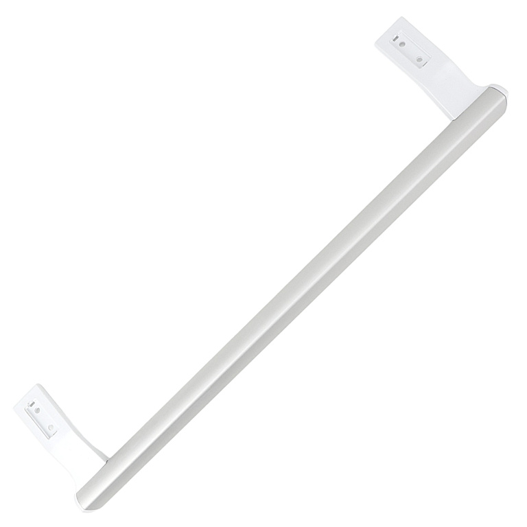 Ручка двери холодильника и морозильника Атлант. Стандартное положение двери холодильника, петли располагаются справа. Цвет: серебро (серая). Длина 435 мм. Расстояние между крепежными отверстиями 387 мм. Крепление под 4 самореза.