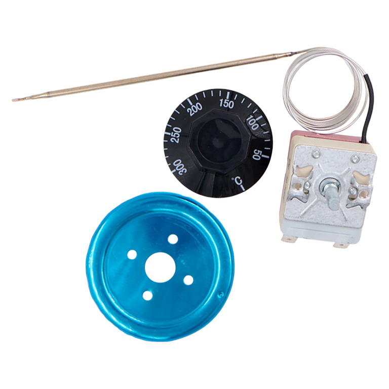 Терморегулятор капиллярный 2-х контактный для плит. Диапазон регулирования от 50°C до 300°C. Длина штока 16 мм. Максимальный рабочий ток 16 А. Напряжение 250 В.