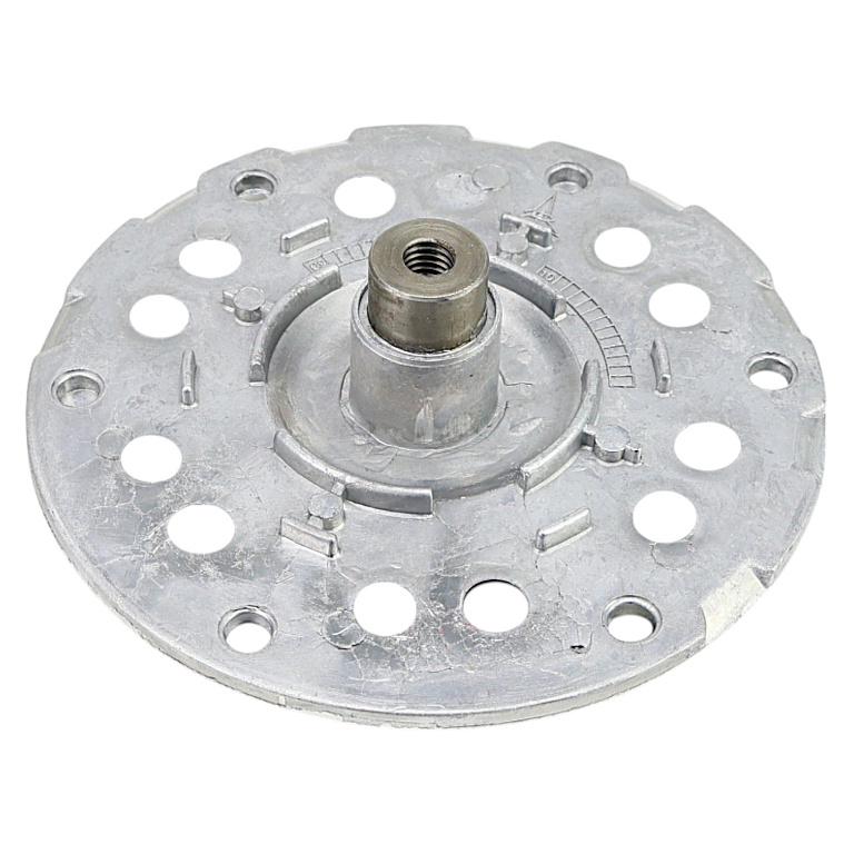 Фланец (опора барабана) в сборе для стиральной машины с вертикальной загрузкой Bosch, Siemens, Brandt, Gorenje, Balay. Располагается со стороны против шкива (левый). Состоит из фланца, сальника VA-RING 22, металического фиксатора, 2-х уплотнительных колец (металлизированные), 2-х уплотнительных колец (резинки), болта крепления шкива М5, 6-ти болтов, 6-ти гроверов, 6-ти гаек. Диаметр центрального штока 17 мм (под подшипник 6203). Внутренний диаметр посадки 53 мм.Подходит для барабана Bosch 243350.Производитель EBI, Италия.