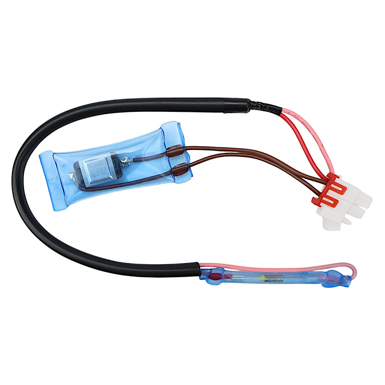 Тепловой датчик оттайки с плавким предохранителем 72 °C. Контакты размыкаются при температуре 12℃, замыкаются при охлаждении до -5℃ Сопротивление 5 кОм. Длина 430 мм.
