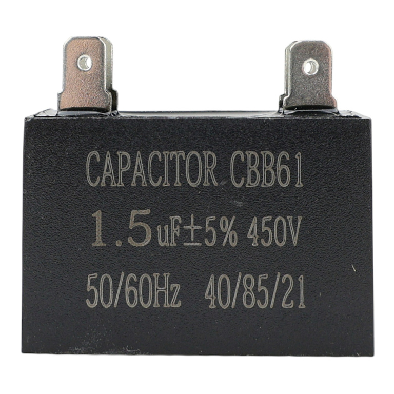 Пусковой конденсатор | Запуск двигателя | Стабилизация тока | Повышение крутящего момента | Назначение: Пусковой конденсатор является ключевым элементом цепи запуска электродвигателя, обеспечивающим сдвиг фаз тока для создания начального крутящего момента. Обеспечивает стабильный пуск моторов в стиральных машинах, компрессорах и другом оборудовании, снижает пусковые токи и предотвращает перегрев обмоток. | Ключевые преимущества: Обеспечение надежного пуска двигателя под нагрузкой; Снижение пусковых токов и защита обмоток от перегрева; Увеличение крутящего момента в начальный момент работы; Стабильная работа при частых циклах включения/выключения; Совместимость с однофазными асинхронными двигателями; Долгий срок службы при соблюдении условий эксплуатации | Признаки неисправности: Двигатель не запускается или запускается с трудом (гудит); Снижение крутящего момента при пуске; Вздутие или подтеки электролита на корпусе; Самопроизвольное отключение двигателя при запуске; Появление запаха гари от перегрева конденсатора; Изменение емкости при измерении (отклонение >20%) | Технические особенности: Тип: электролитический неполярный конденсатор; Емкость: 10-200 мкФ (в зависимости от мощности двигателя); Рабочее напряжение: 350-450 В переменного тока; Допуск: ±5% от номинальной емкости; Клеммы: стандартные 6.3 мм или винтовые; Корпус: алюминиевый с изоляцией | Совместимость: Универсальный конденсатор для двигателей стиральных машин, компрессоров, вентиляторов. Требуется точный подбор по емкости и напряжению. | Важно: Перед заменой обязательно разрядите конденсатор! Устанавливайте конденсатор с идентичными параметрами. Не используйте конденсаторы с вздутым корпусом или отклонениями в емкости. | Гарантия: Гарантийный срок — 12 месяцев. Соответствие стандартам безопасности IEC 60252-1.