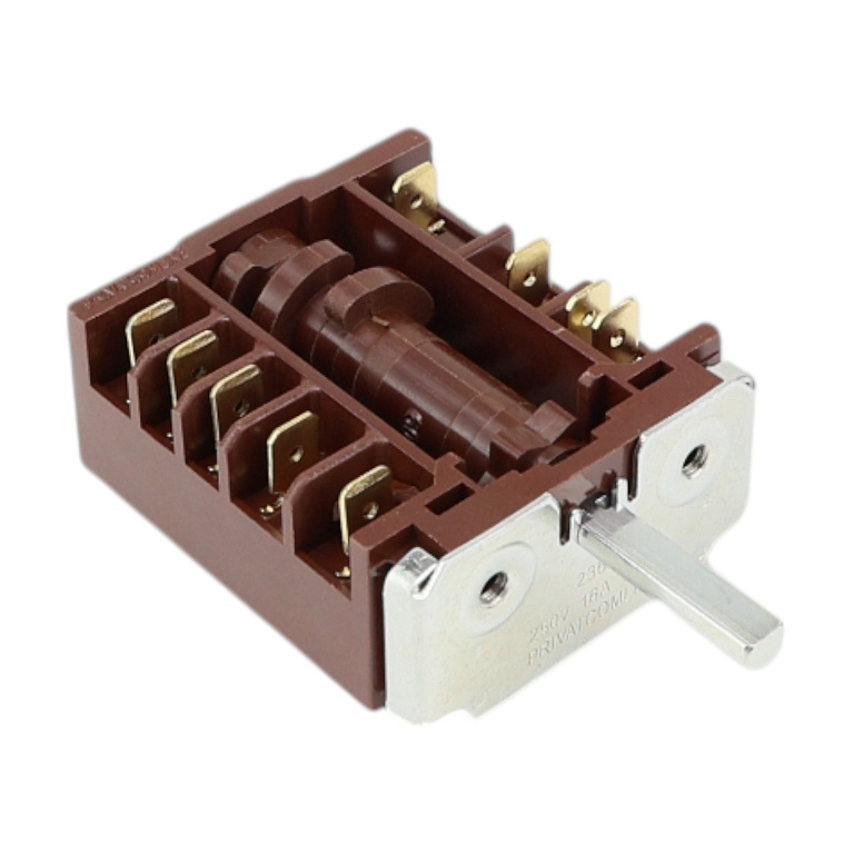 Переключатель режимов духовки отвечает за выбор температуры и режимов нагрева, поэтому его износ сразу отражается на работе техники: нагрев становится нестабильным, лампа индикатора работает неправильно или духовка не реагирует на поворот ручки. Замена регулятора полностью устраняет эти проблемы и возвращает точный контроль над режимами приготовления. Подбор переключателя простой: главное ориентироваться на количество позиций переключения и длину штока — эти параметры определяют совместимость с конкретной моделью духовки и корректную посадку ручки управления. Если они совпадают с вашим старым переключателем, деталь устанавливается без доработок и полностью повторяет работу оригинального узла. Новый переключатель обеспечивает чёткую фиксацию режимов, корректный щелчок при переключении и стабильную работу нагревательных элементов. Корпус защищён от перегрева, контакты рассчитаны на длительную эксплуатацию, а шток имеет стандартную форму, что позволяет установить ручку управления в правильном положении. Замена не требует сложного вмешательства: достаточно снять старый регулятор, перенести провода согласно схеме и закрепить новый элемент. После установки духовка снова работает точно и предсказуемо, сохраняет выбранный режим и правильно удерживает температуру. Такой переключатель — практичное решение, которое помогает продлить срок службы духовки и вернуть удобство управления без дорогостоящего ремонта. Если количество позиций и длина штока совпадают, деталь подходит и работает как оригинальная.