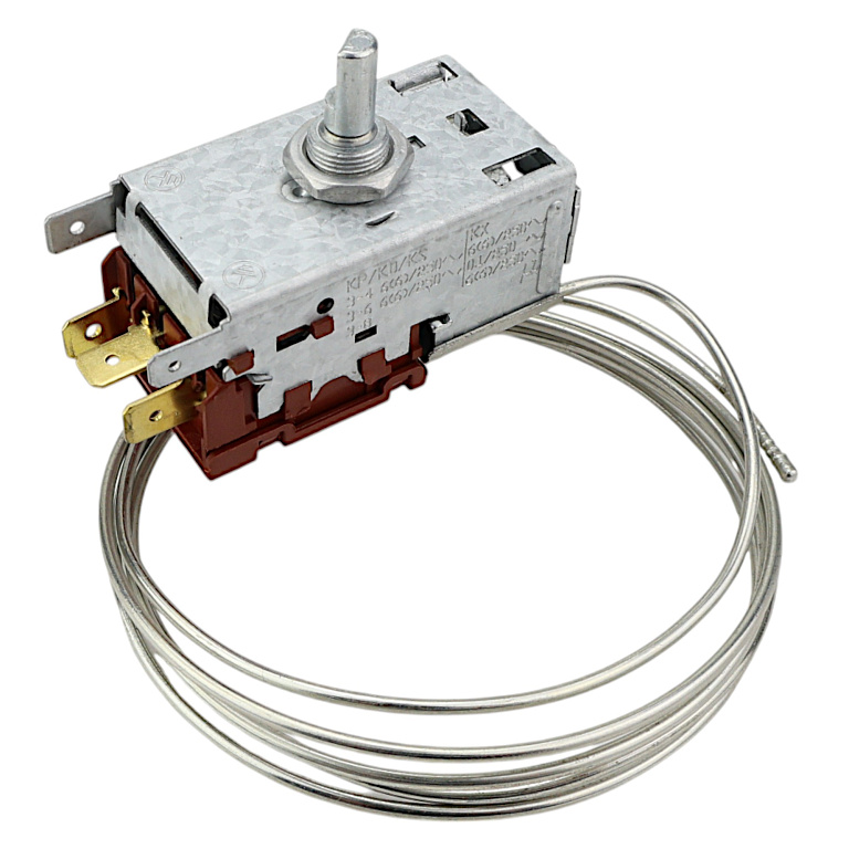 Термостат для холодильника | Регулировка температуры | Точность поддержания режима | Надежность работы | Назначение: Термостат является ключевым элементом системы температурного контроля холодильника, обеспечивающим поддержание заданного температурного режима в камерах путем автоматического включения и отключения компрессора. Отвечает за энергоэффективность и сохранность продуктов. | Ключевые преимущества: Точное поддержание установленной температуры (±1°C); Автоматическая работа без вмешательства пользователя; Энергоэффективность за счет оптимальных циклов работы; Совместимость с большинством моделей холодильников; Простота установки и настройки; Надежность и долгий срок службы | Признаки неисправности: Нестабильная температура в камерах; Постоянная работа компрессора без отключения; Отсутствие охлаждения при работающем компрессоре; Невозможность регулировки температуры; Щелчки при работе термостата; Видимые повреждения корпуса или датчика | Технические особенности: Тип: механический с сильфонной трубкой или электронный; Диапазон регулировки: от +2°C до +8°C (холодильная камера); Чувствительный элемент: капиллярная трубка длиной 1.5-2 м; Контакты: серебряные, рассчитанные на 10-16А; Крепление: винтовое или клиповое; Корпус: термостойкий пластик | Совместимость: Универсальный термостат для холодильников Bosch, Samsung, LG, Indesit, Atlant. Требуется подбор по длине капиллярной трубки и температурному диапазону. | Важно: Правильно располагайте капиллярную трубку на испарителе! Не перегибайте трубку при установке. Проверяйте герметичность системы перед подключением. | Гарантия: Гарантийный срок — 12 месяцев. Соответствие стандартам качества ISO 9001 и IEC 60730-2-8.
